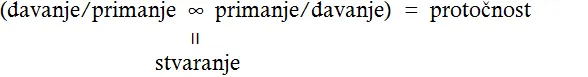 Zamislimo jedan cijev dugačku recimo 1 metar. Ta cijev je crijevom priključen na vodovod sa ventilom (slavina), a drugi kraj cijevi također ima ventil i taj kraj cijevi je položen u npr. kadu (odvodnja). Tada, ako su oba ventila otvorena, kroz cijev se uspostavlja tok vode, a cijeli taj sustav predstavlja protočnost. Zanimljivost te ilustracije je u tome da ako zatvorimo samo jedan od ventila bio ulazni na slavini ili izlazni na cijevi, tok je prekinut i tako je ugašena protočnost sustava. Poanta ovdje je, da je teško definirati jedan od ventila kao „glavni“ koji će uspostaviti ili prekinuti tok u tom sistemu, jer oba imaju istu funkciju — zaustavljanje ili uspostavljanje toka. Voda prestaje teći iz cijevi zatvori li se samo ulazni ili izlazni ventil, a tok je ponovno uspostavljen samo kada su oba ventila otvorena. Ulazni i izlazni (izvorni i odvodni) kao opisi ventila samo su pojmovi koji se koriste ovisno o praktičnoj perspektivi. Upravo na taj način razmatram proces primanja i davanja (primanje kao izlazni ventil, davanje kao izlazni ventil).