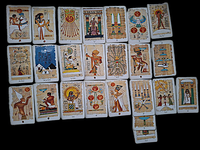 Egipćani su Kralja Mačeva povezivali s Thothom, bogom mudrosti, pisanja, znanosti i suda, koji blagoslivlja snažnim intelektom, moralnom jasnoćom i nebeskim autoritetom. Kraljicu Mačeva pronašli su u Maat, božici istine, pravde i ravnoteže, onom koja „važe“ duše i presijeca laž i obmanu mačem uvida.