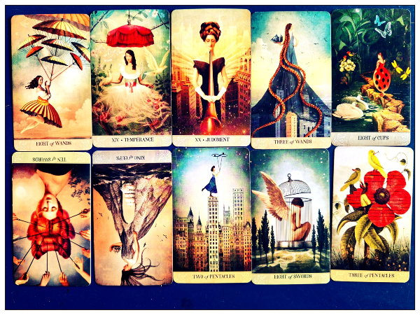 U tom trenutku, deset mačeva u leđima pretvara se u deset suncobrana s krilima. Ono što vas je prikovalo sada vas podiže. Kao da ste odjednom ozdravili — mentalno, emocionalno ili čak fizički (Umjerenost). Ne zato što je bol nestala, nego zato što vas više ne ograničava. Dobili ste novi fokus i krećete se brzinom munje. Kao pas koji bježi s lanca kad ga oslobodite. Ne zato što ste odjednom jači (a naravno da jeste), nego zato što više niste vezani. I dok se to događa, pogled vam se pomiče prema naprijed (3 štapa).