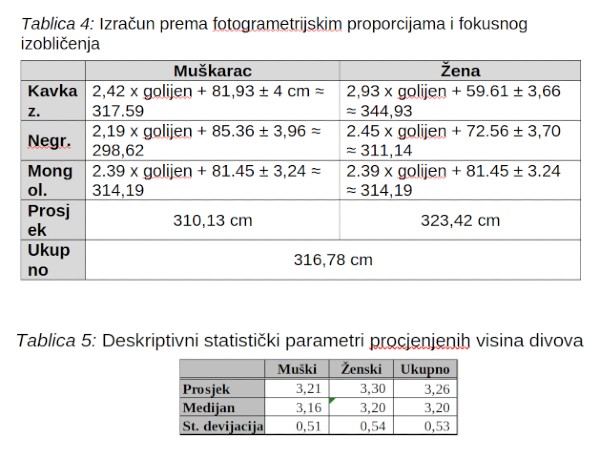 Tablica 4: Izračun prema fotogrametrijskim proporcijama i fokusnog izobličenja