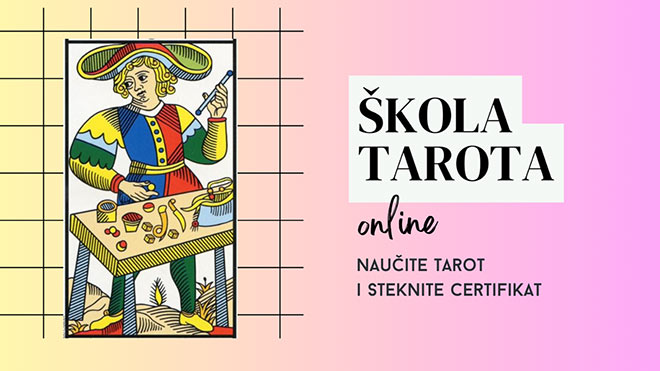 Centar za astrološku edukaciju organizira online školu tarota. Kroz deset predavanja ćete naučiti koristiti tarot karte i dobiti na kraju potvrdu o završenoj školi. Webinari će se održavati jednom tjedno, petkom od 18 do 20 sati. Odmah nakon svakog održanog webinara svi polaznici dobivaju link za ponovno gledanje, tako da nije uvijek potrebno biti direktno uključen. Uz predavanja se dobivaju popratni materijali i knjige, te besplatni profesionalni program za osobnu uporabu. Na kraju tečaja se dobiva certifikat o učestvovanju. Kroz učenje tarota moguće je razvijati intuiciju i istovremeno kreirati stvarnost koju želimo. Neke od tema predavanja će biti: